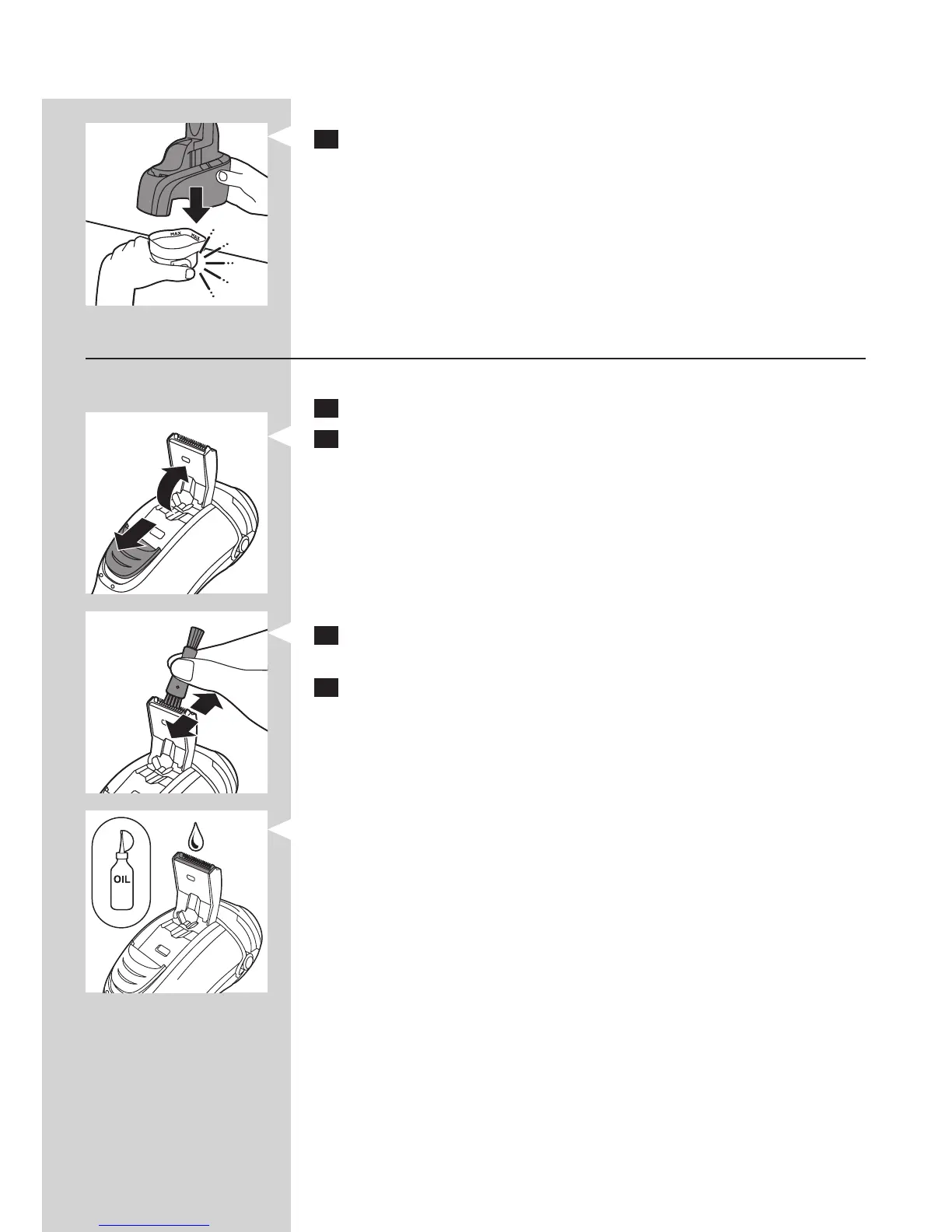 nettoyage. Brossez les dents de la tondeuse de haut en bas.