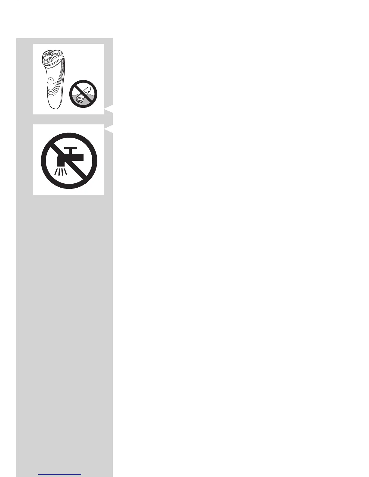 - Gebruik het scheerapparaat niet in bad of onder de douche.
