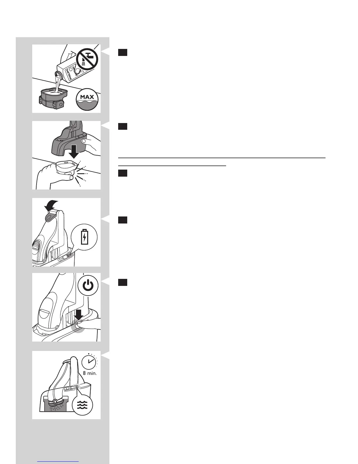 Merk: Pass på at rengjøringskammeret alltid fylles over MIN-merket.