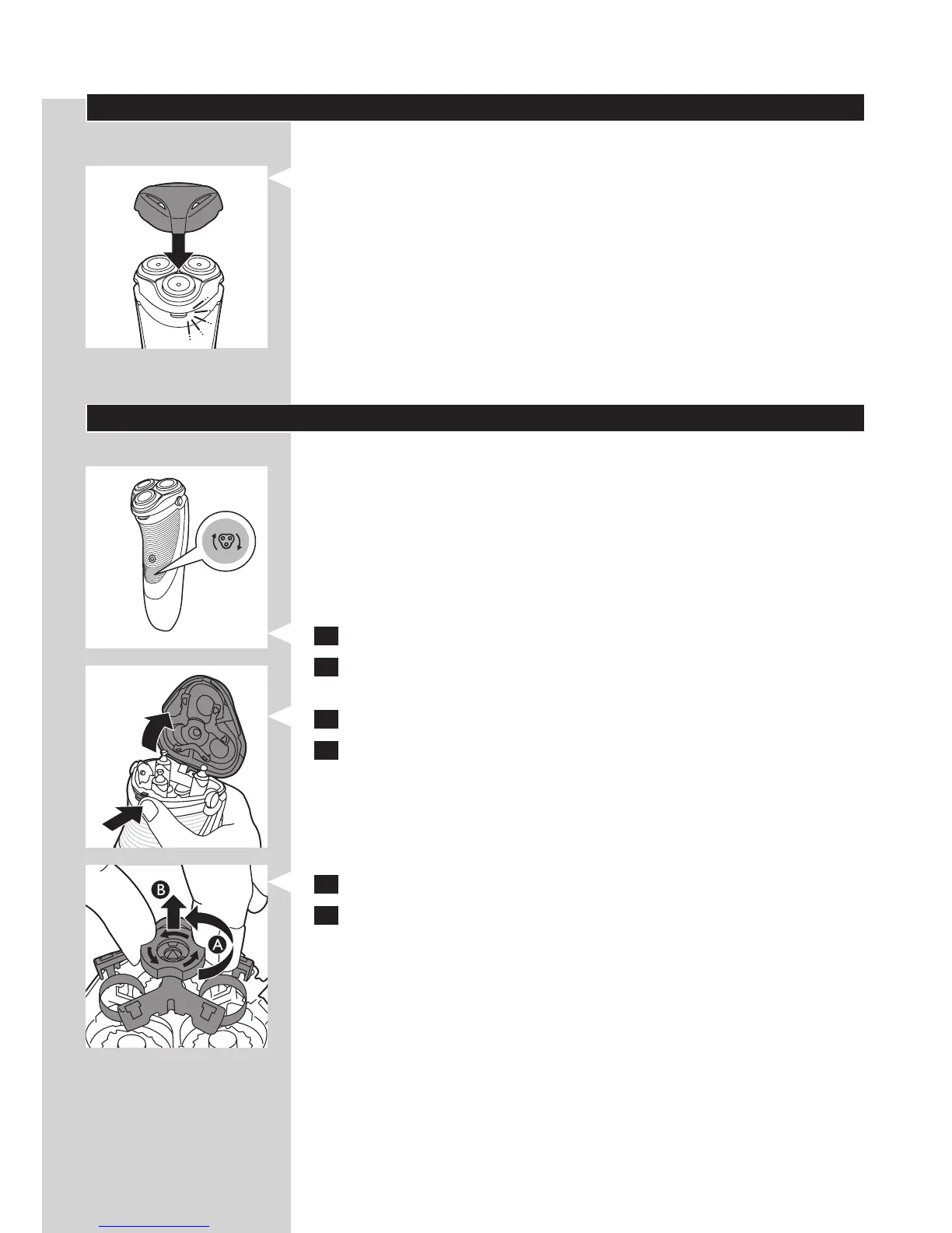 6 Remove the shaving heads and place new ones in the shaving unit.