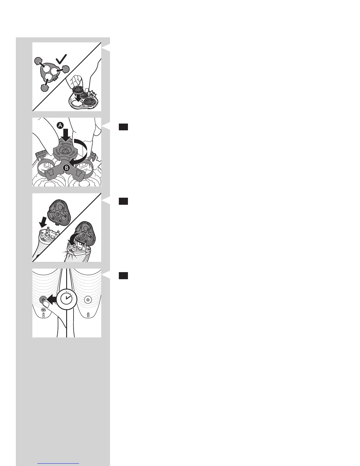 Note: Make sure that the projections of the shaving heads t exactly into the