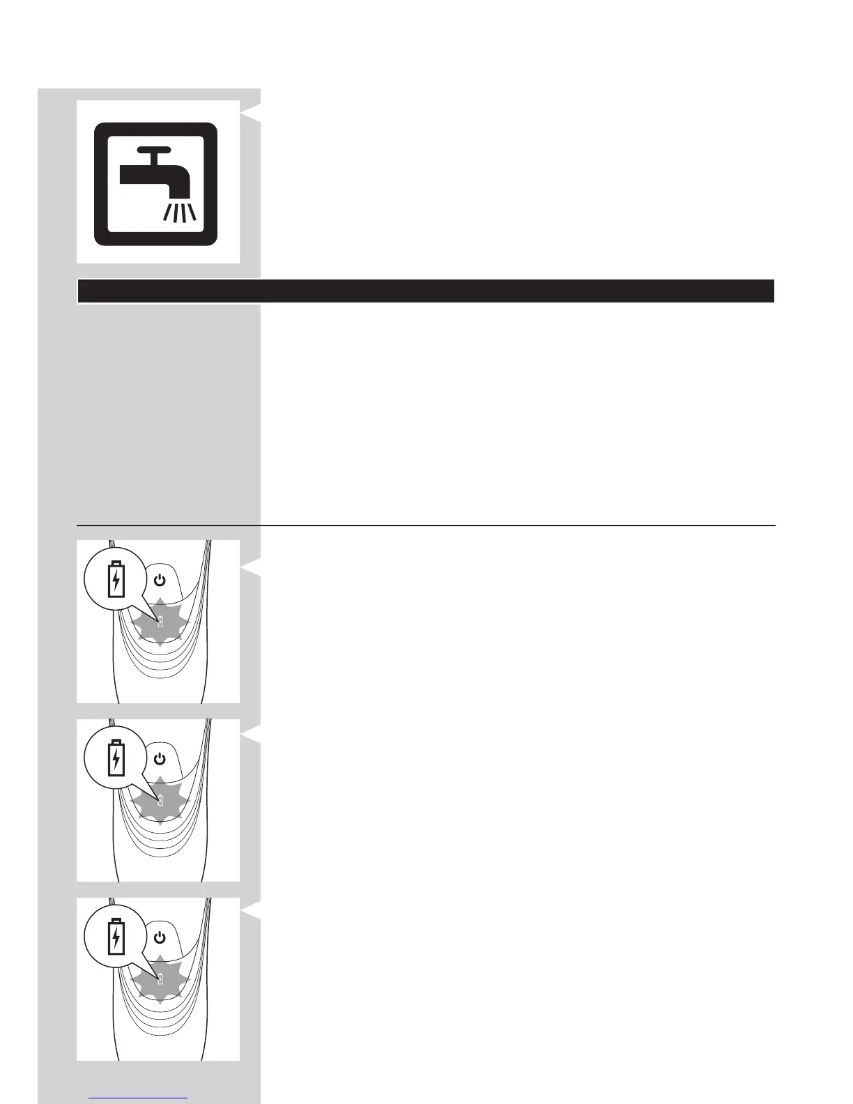 - När rakapparaten laddas blinkar batterilampan vitt.