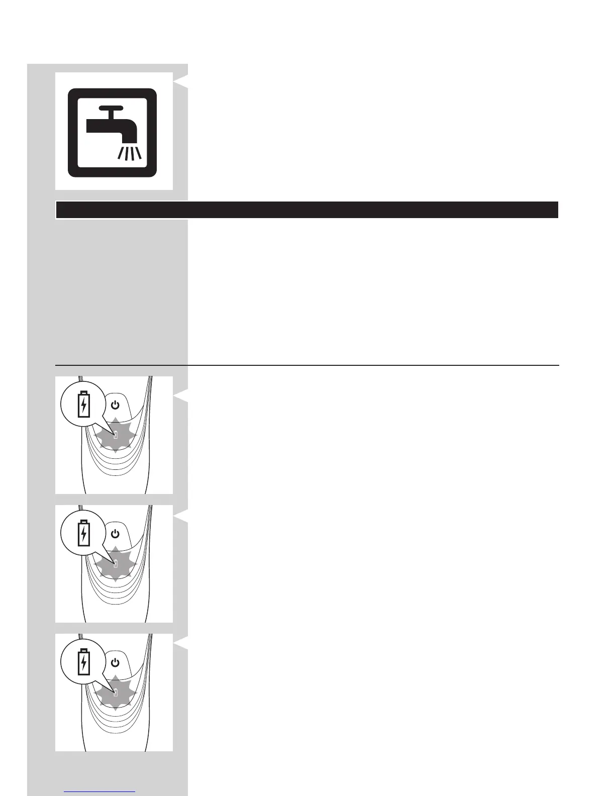 - Når shaveren oplades, blinker batteriindikatoren hvidt.