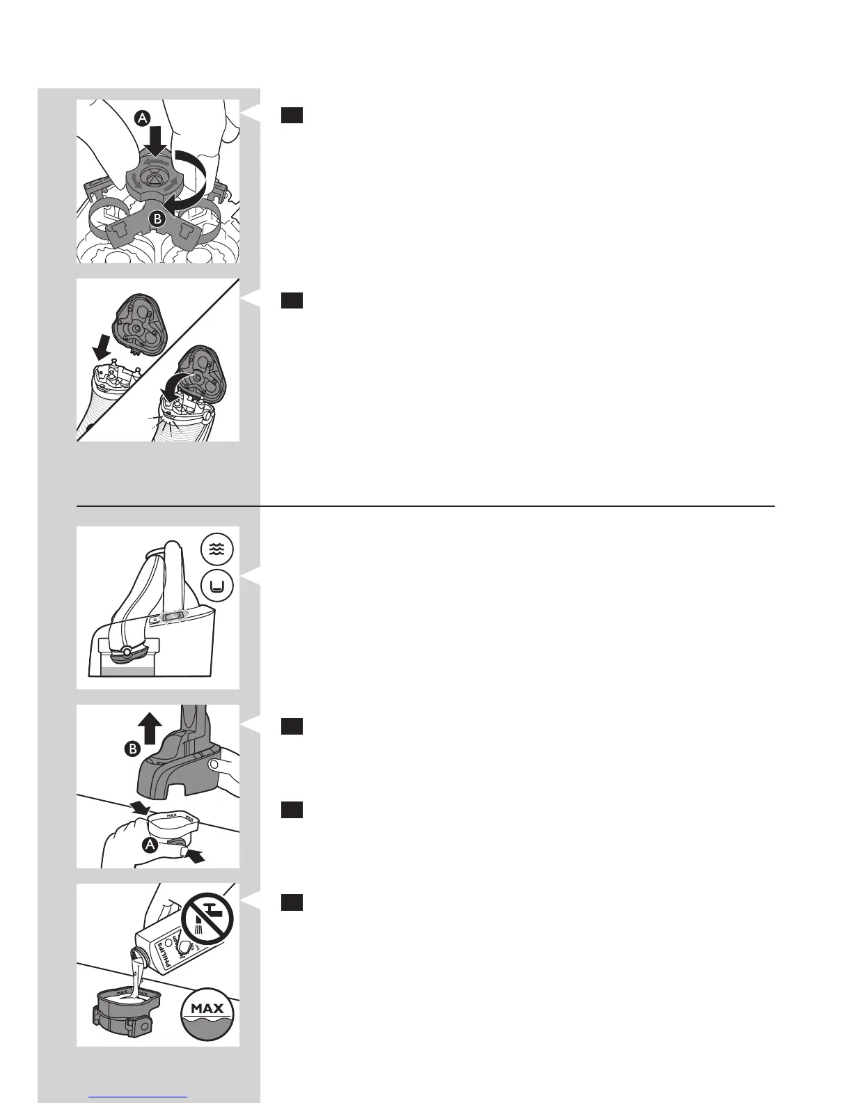 7 Setzen Sie den Scherkopfhalter wieder in die Schereinheit (A), und