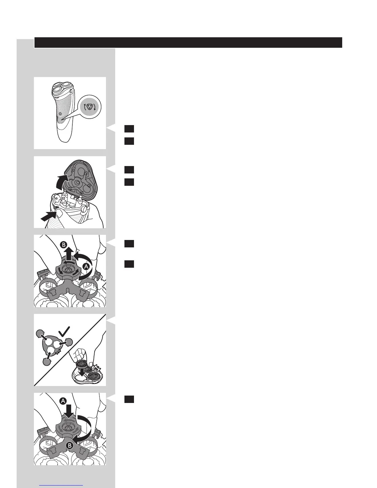 6 Entnehmen Sie die Scherköpfe, und setzen Sie neue Scherköpfe in die