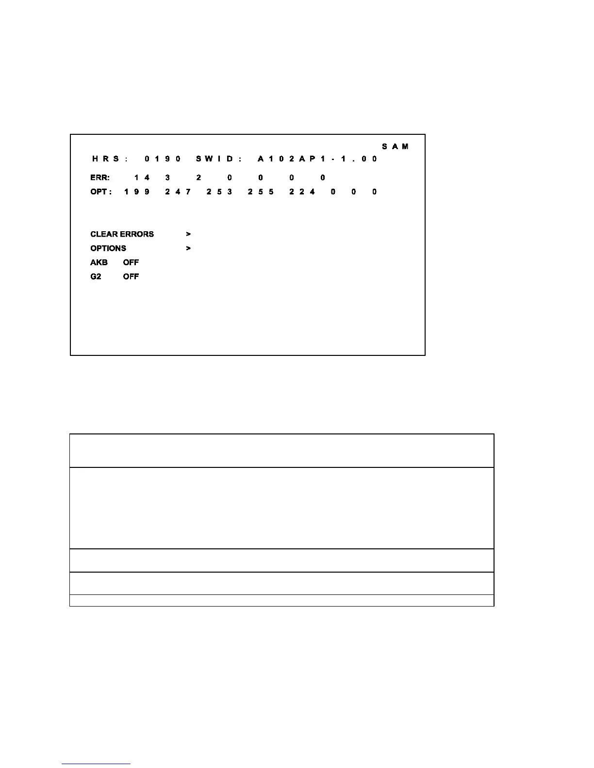 In SAM the following information is displayed on the screen:
