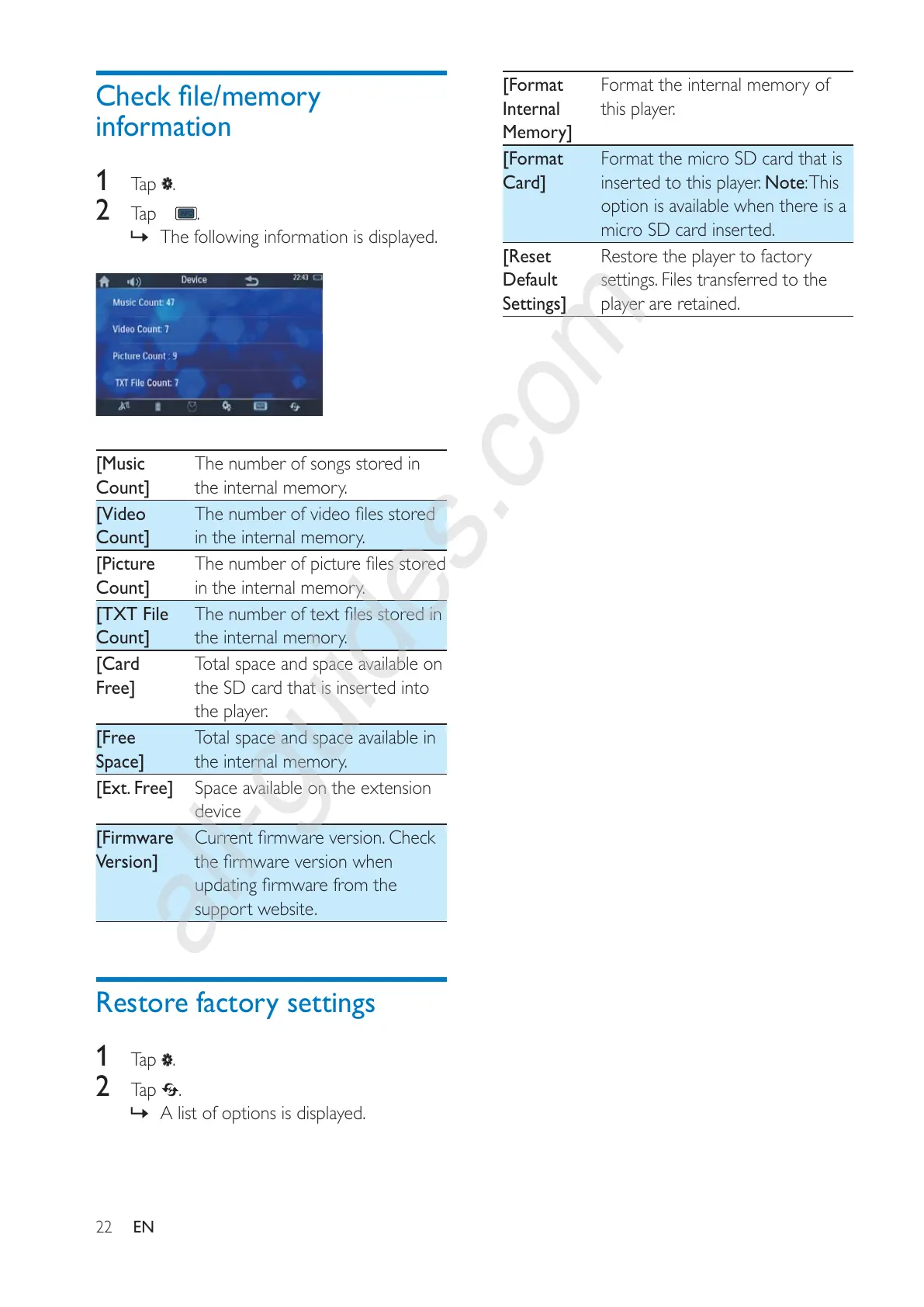 Restore the player to factory