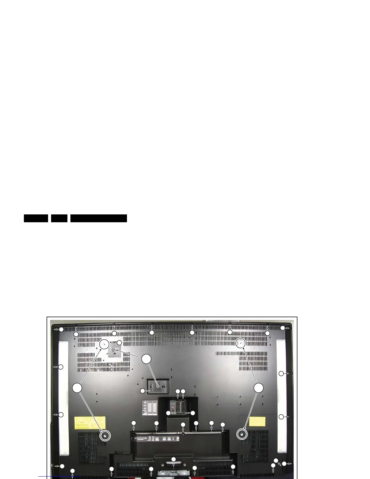 6. Lift the rear cover from the TV. Make sure that wires and