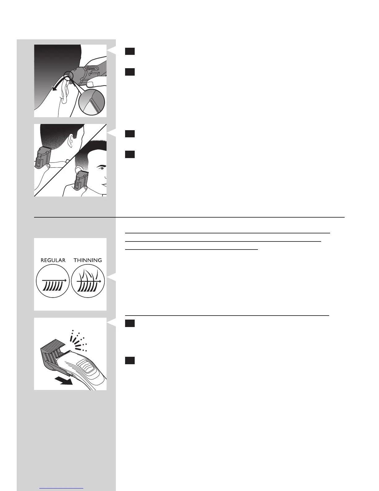We advise you not to use the thinning comb for very short haircuts.