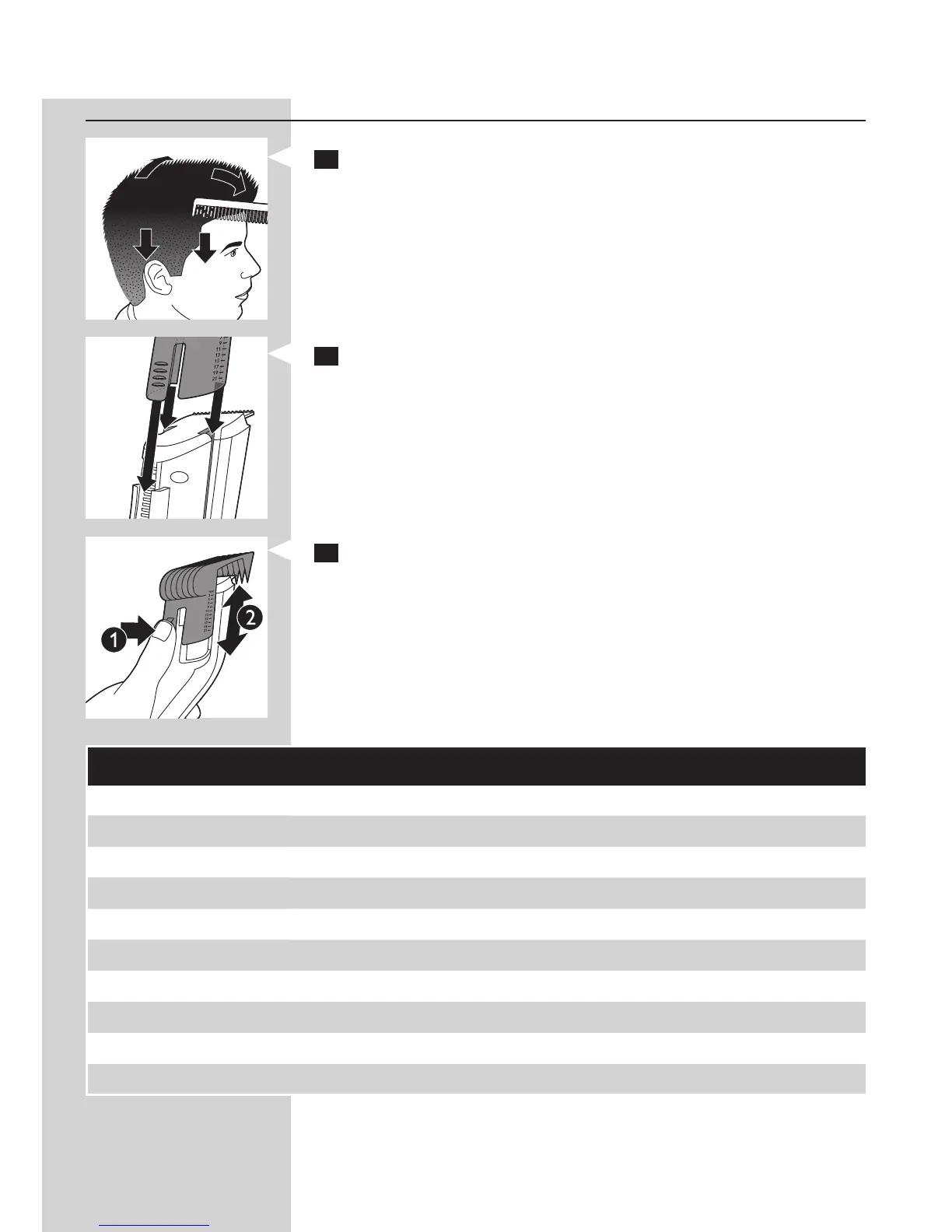 comb up or down (2) to set the desired length setting.