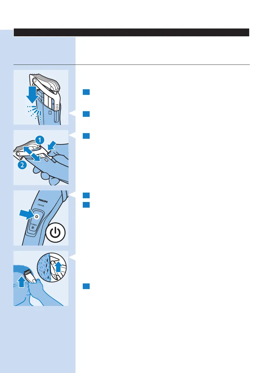 and slide the comb to the desired hair length setting (2).