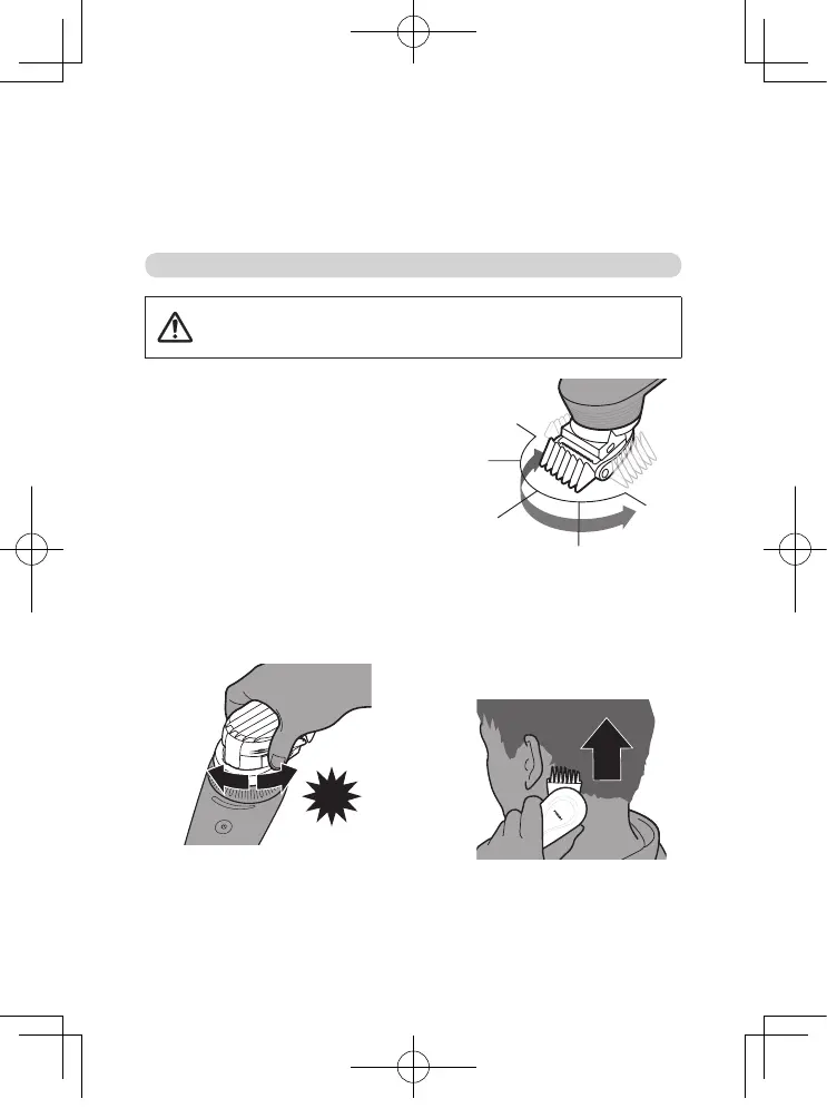 コームの平らな部分が頭皮に密着すヘアーターを動かて、ご使用