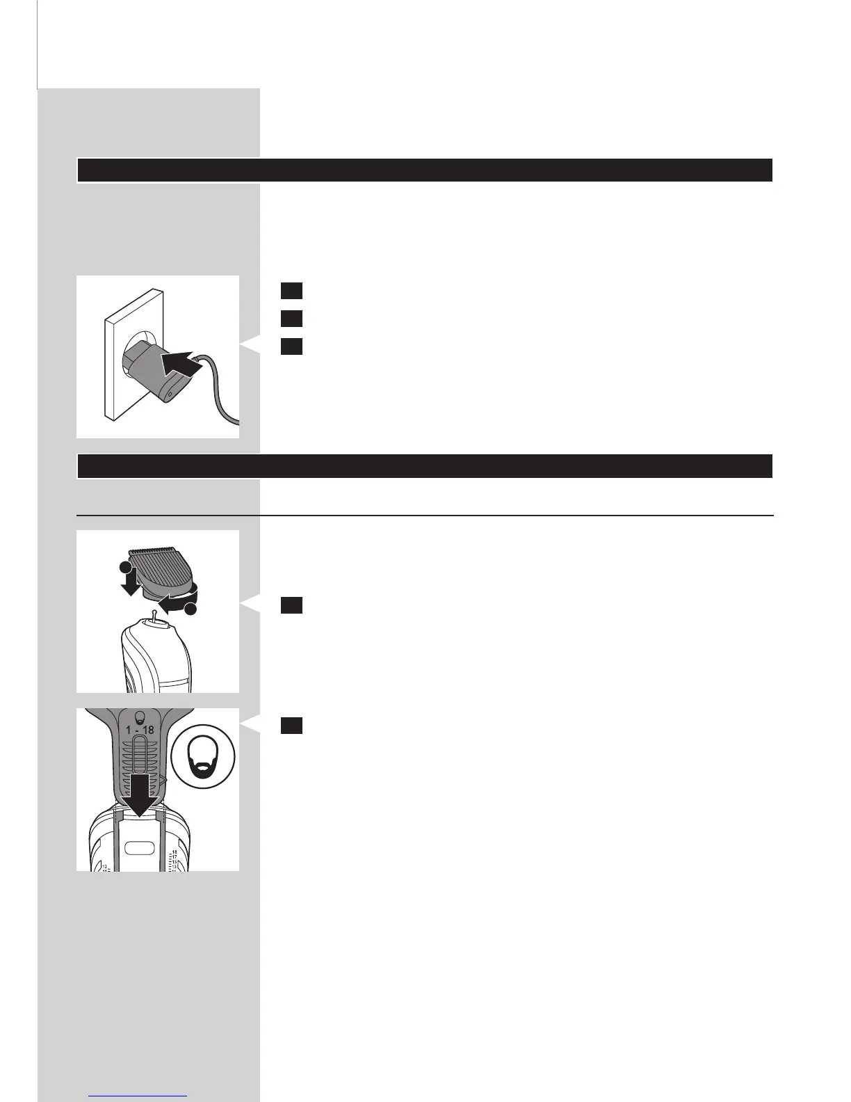 1 Place the beardtrimmer on the handle (1).