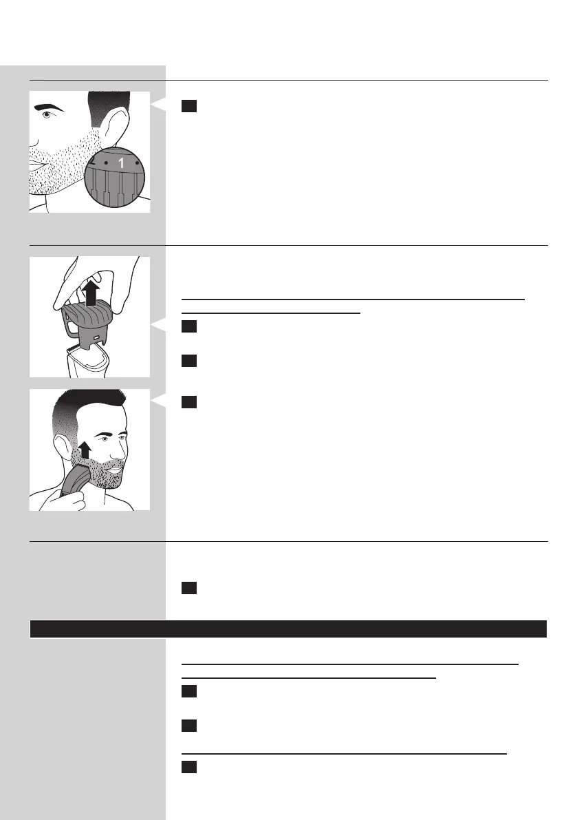 1 Quite el peine-guía para la barba del aparato tirando de él como se