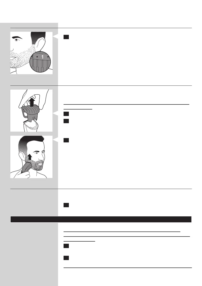 1 Voor een stoppelbaard trimt u uw baard met de baardtrimkam