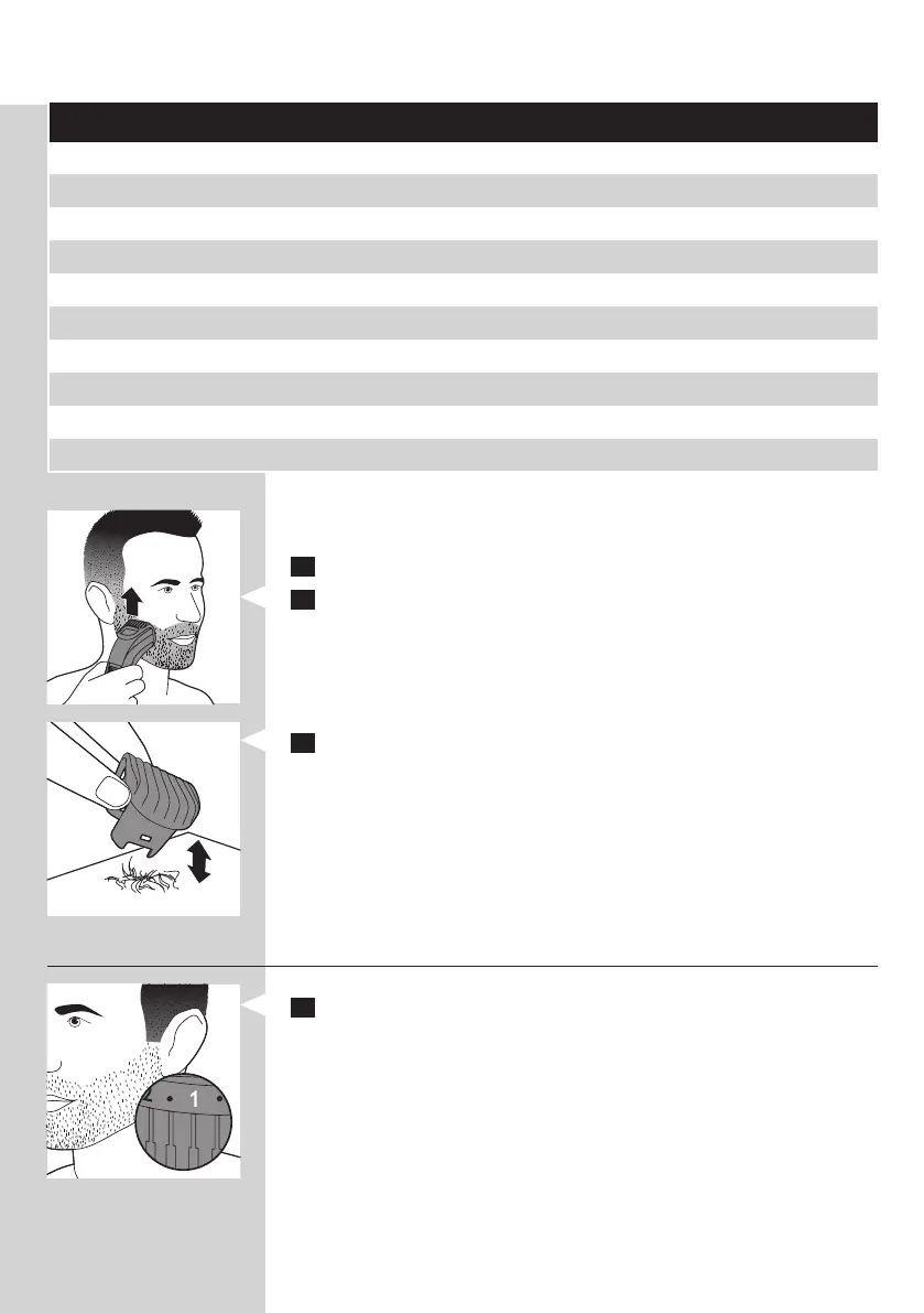 1 ’Kirli sakal’ için, sakal düzeltme tarağı ayarını 1’e getirerek düzeltme