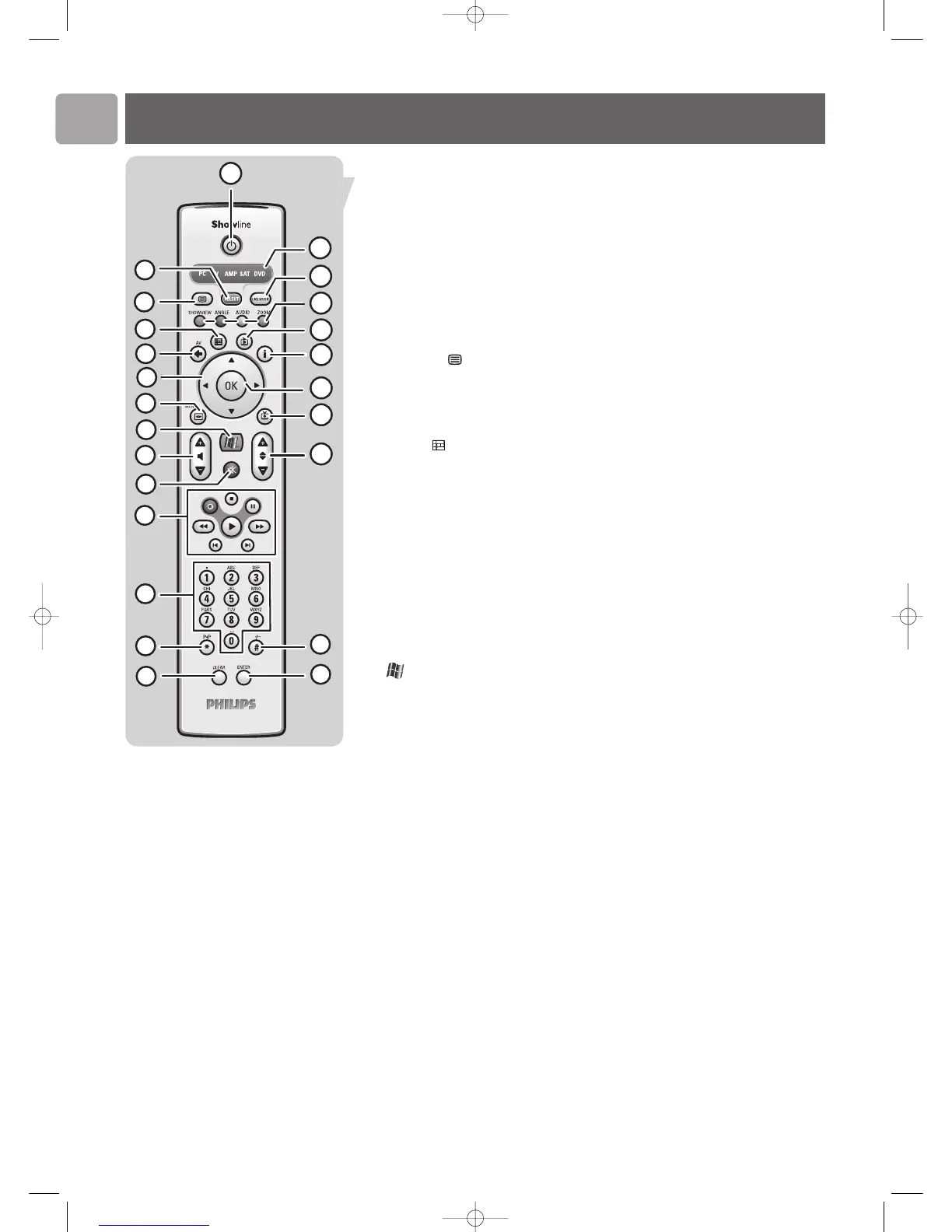 Adjusts the volume down (–) and up (+) of your Philips TV.