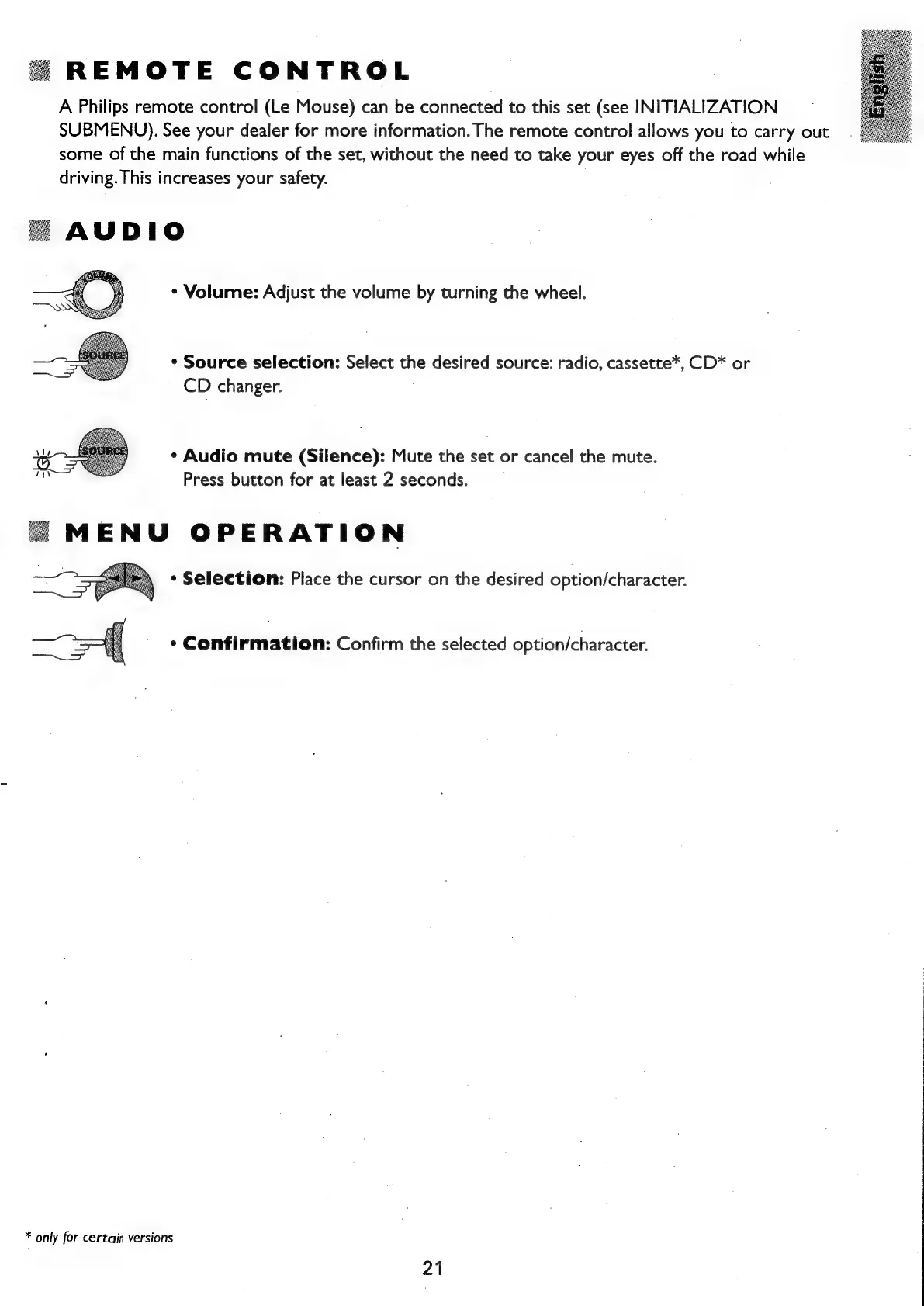 Philips RC759 RDS - Remote Control; Menu Operation