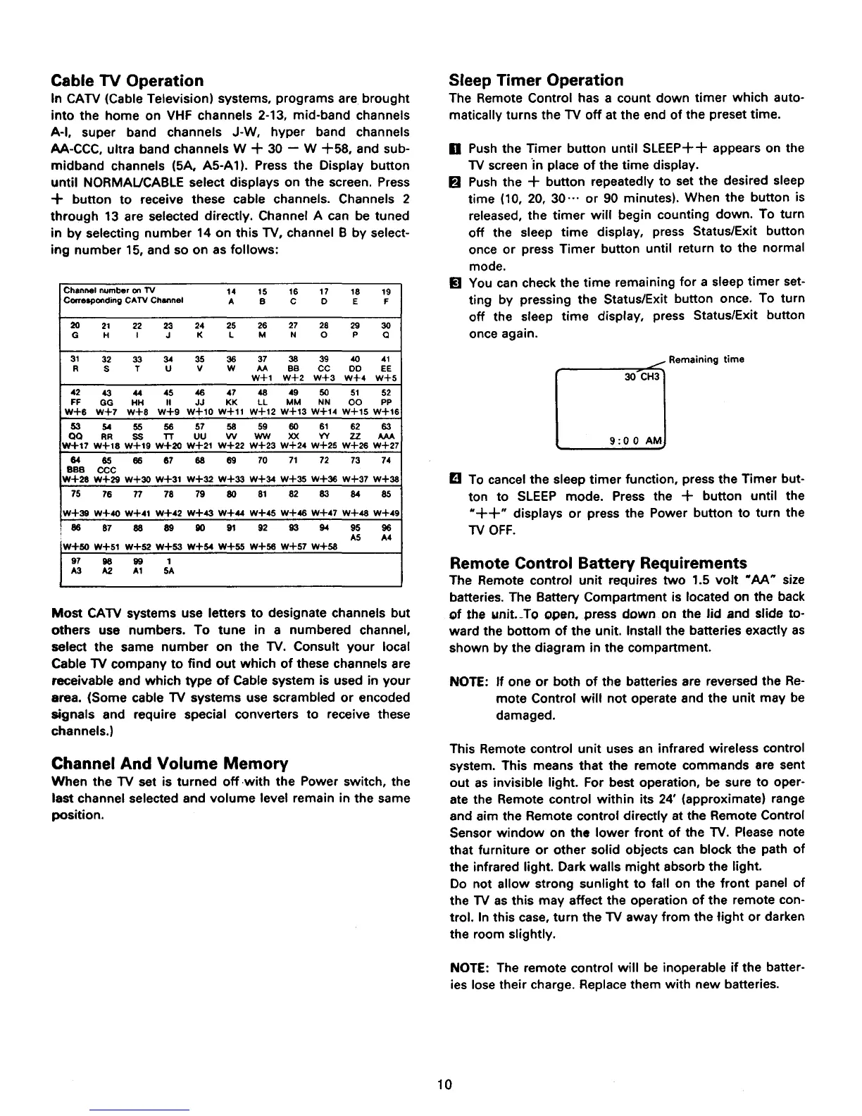 Philips RD0945 - Cable TV Operation; Sleep Timer Operation; Remote Control Battery Requirements