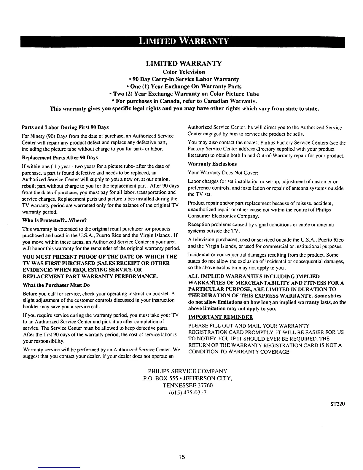 Philips RD0945 - Limited Warranty Information; Warranty Coverage and Exclusions