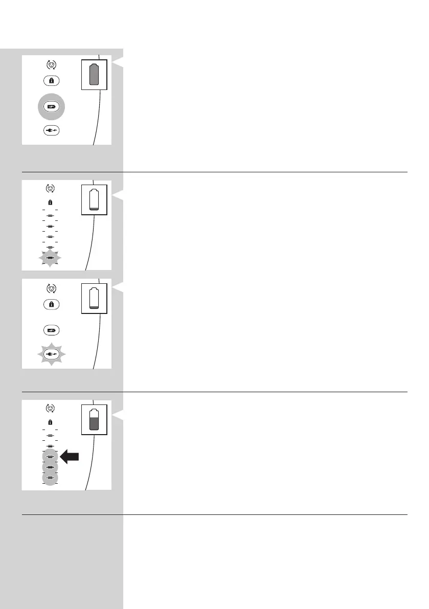 - Kapasiti bateri yang tinggal ditunjukkan oleh bilangan lampu pengecasan