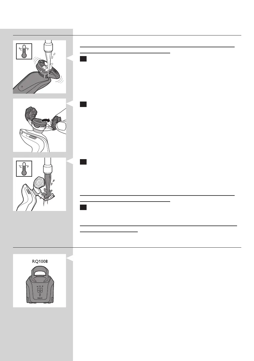 4 Kruopščiai nukratykite vandenį ir palikite skutimo galvutes atviras,