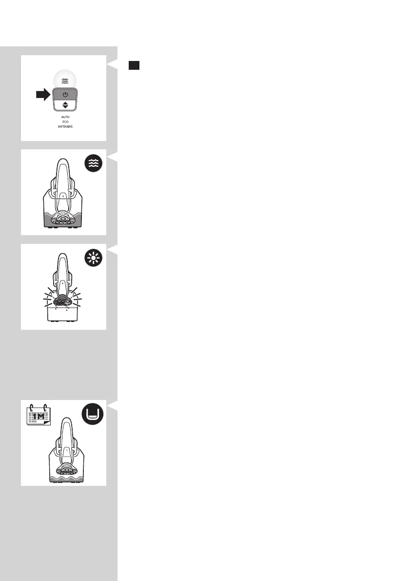 , Plovimo lemputė ima blyksėti, o barzdaskutė automatiškai