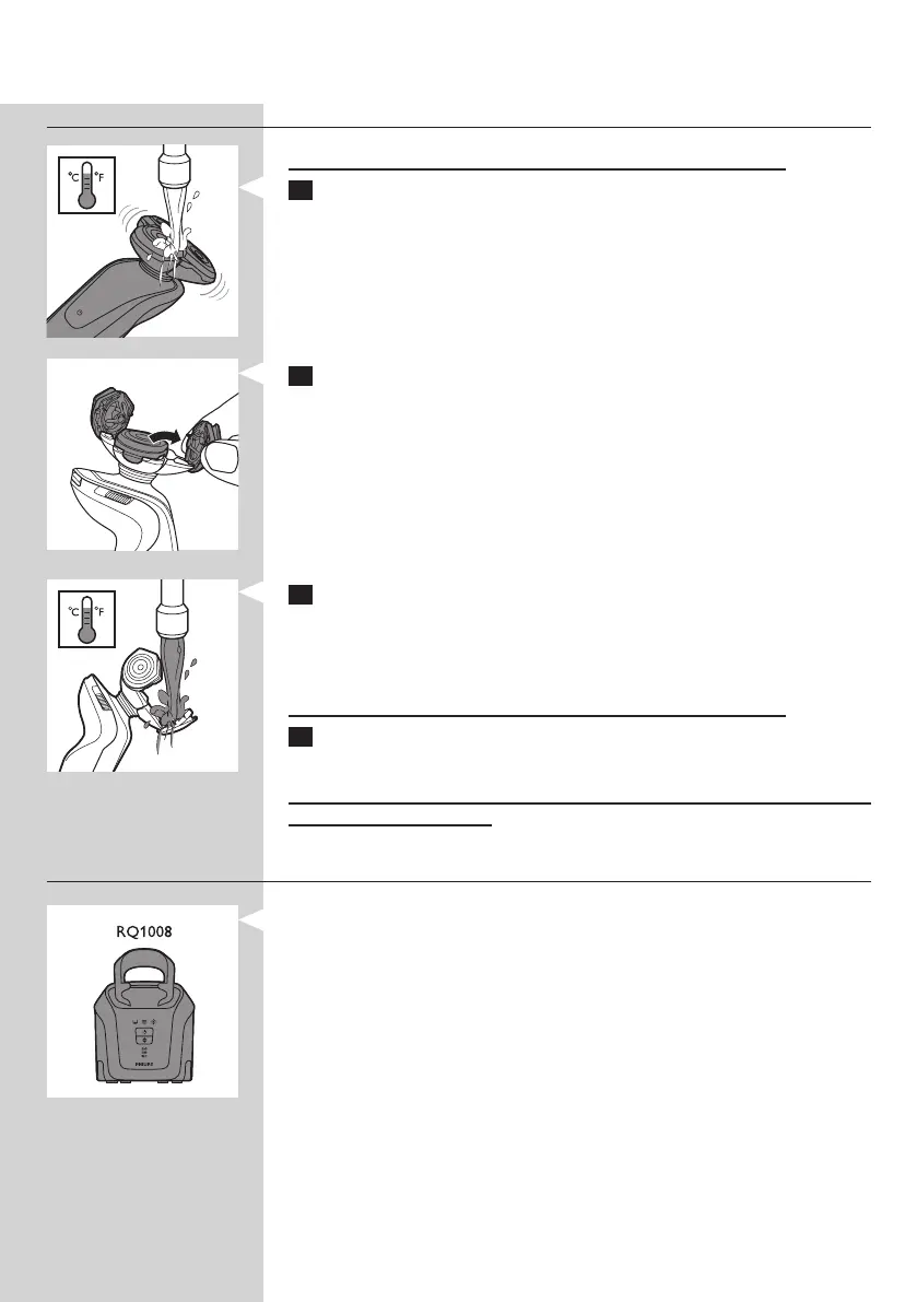 1 Clătiţi unitatea de bărbierire sub jet de apă caldă.