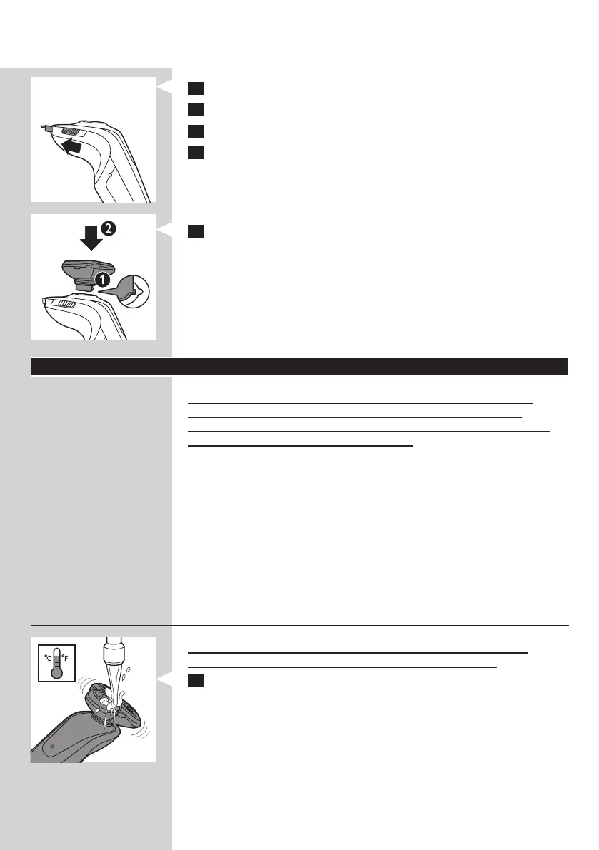бритвы (1). Затем надавите на бритвенный блок (2), чтобы
