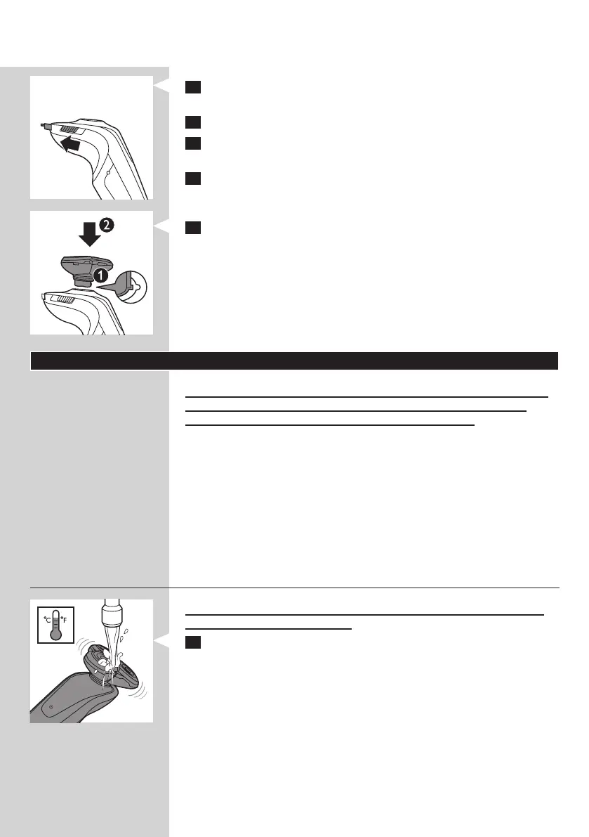 holiaceho strojčeka (1). Potom holiacu jednotku zatlačte nadol (2),