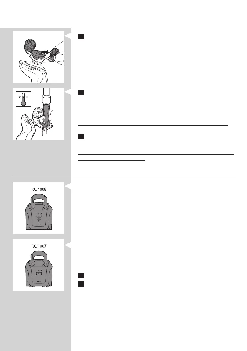 4 Previdno otresite vso odvečno vodo in pustite brivne glave odprte,