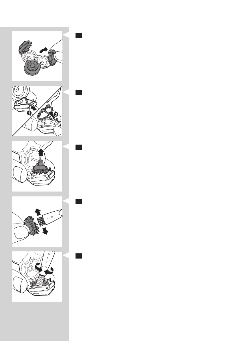 2 Povlačenjem otvorite tri glave za brijanje jednu po jednu.