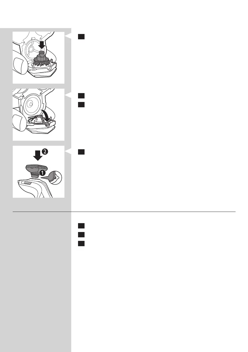 (1). Zatim pritisnite jedinicu za brijanje ka dole (2) da biste je