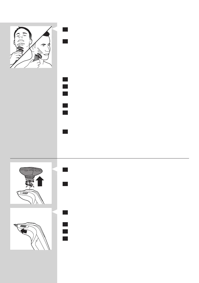 5 Krouživými pohyby pohybujte holicími hlavami po pokožce.