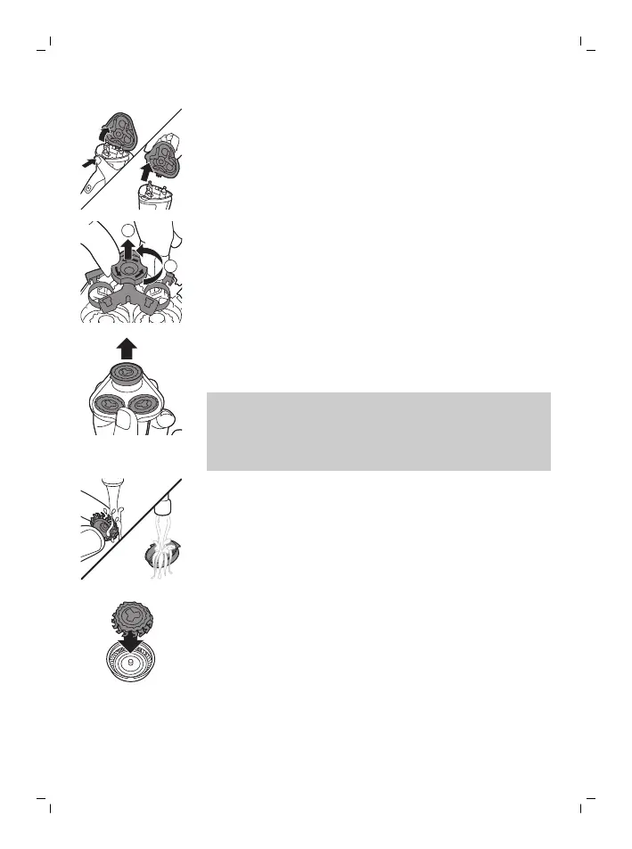 4 Remove and clean one shaving head at a time.
