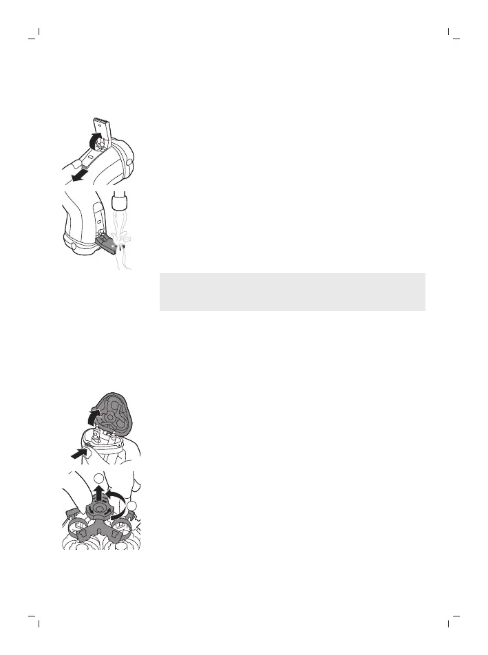 Press the release button to open the shaving unit. Pull