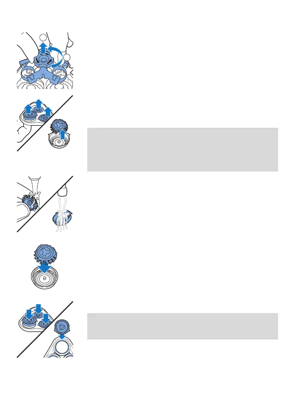 4 Tıraş başlıklarını teker teker çıkarıp temizleyin.