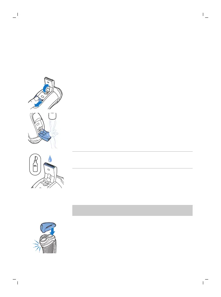 3 Įjunkite prietaisą ir valykite kirptuvą po