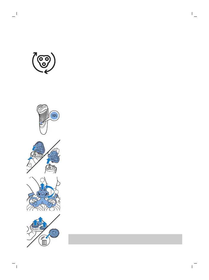 5 Išimkite skutimo galvutes iš skutimo įtaiso ir