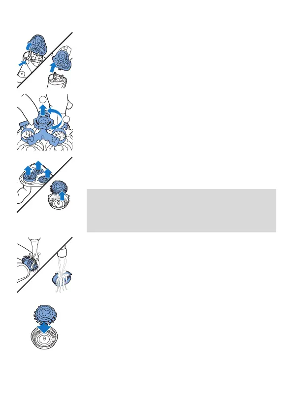 4 Verwijder en reinig één scheerhoofd tegelijk. Elk