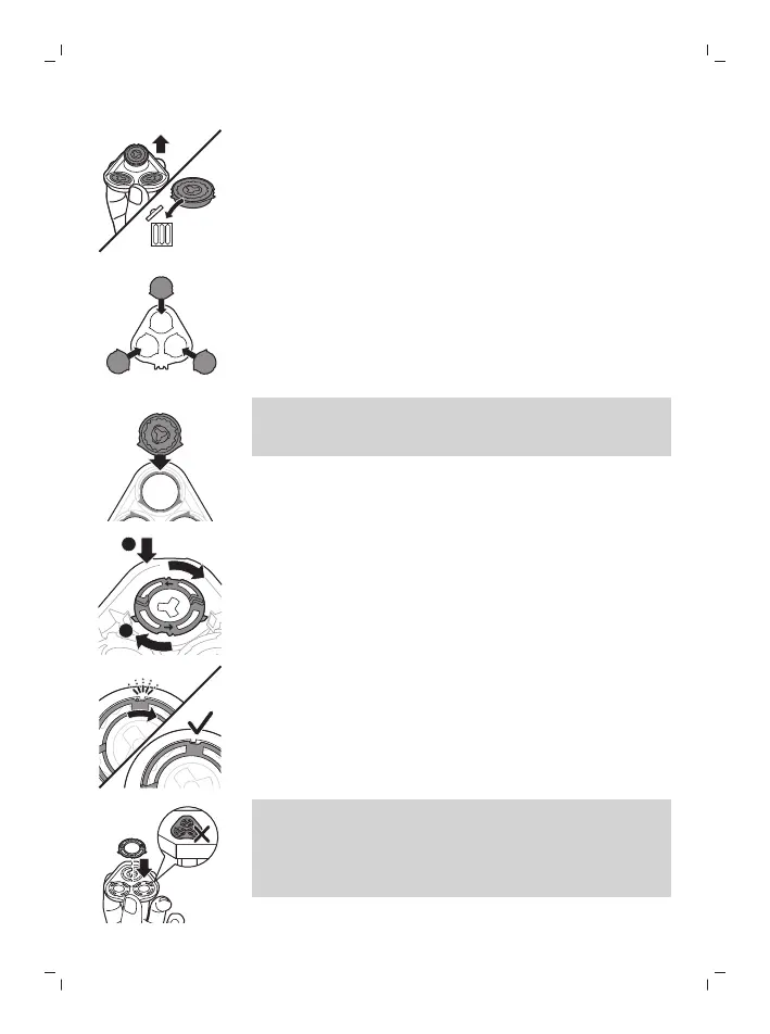the retaining rings. Do not place the shaving head