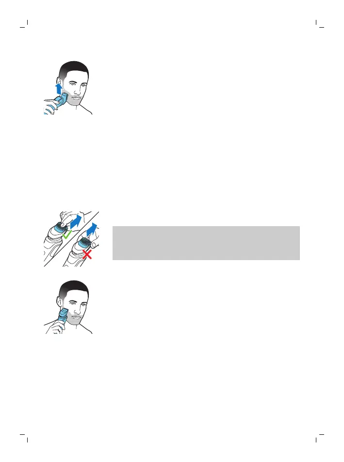 修剪梳的正面与皮肤完全接触。