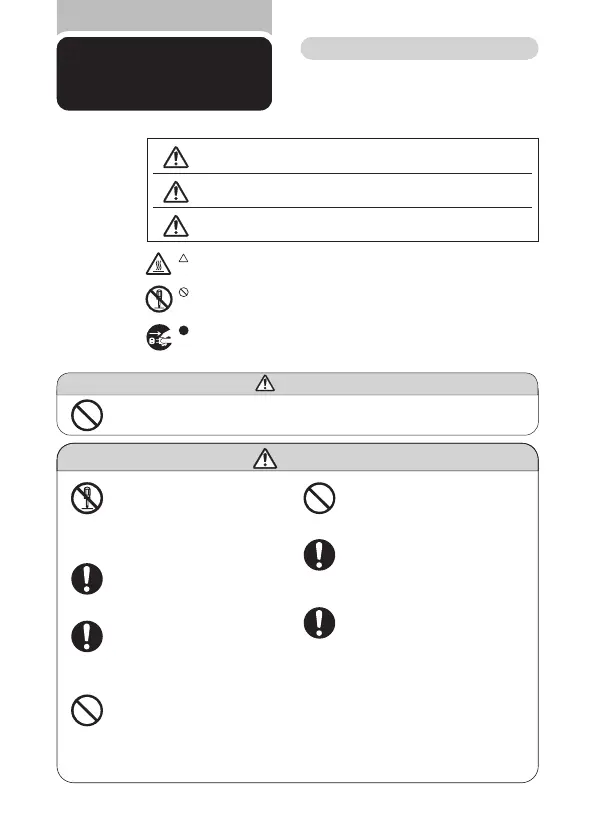 記号は、「危険、警告、注意」を示します。図の中や近くに具体的な注意