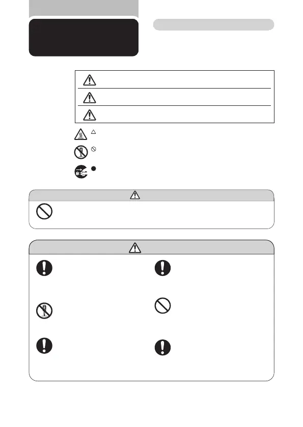 記号は、「危険、警告、注意」を示します。図の中や近くに具体的な注意