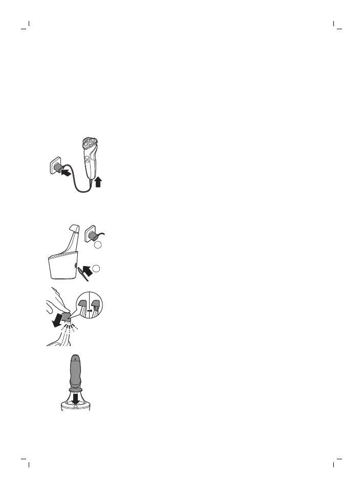 뽑고, 소형 플러그를 면도기에서 분리하십시오.
