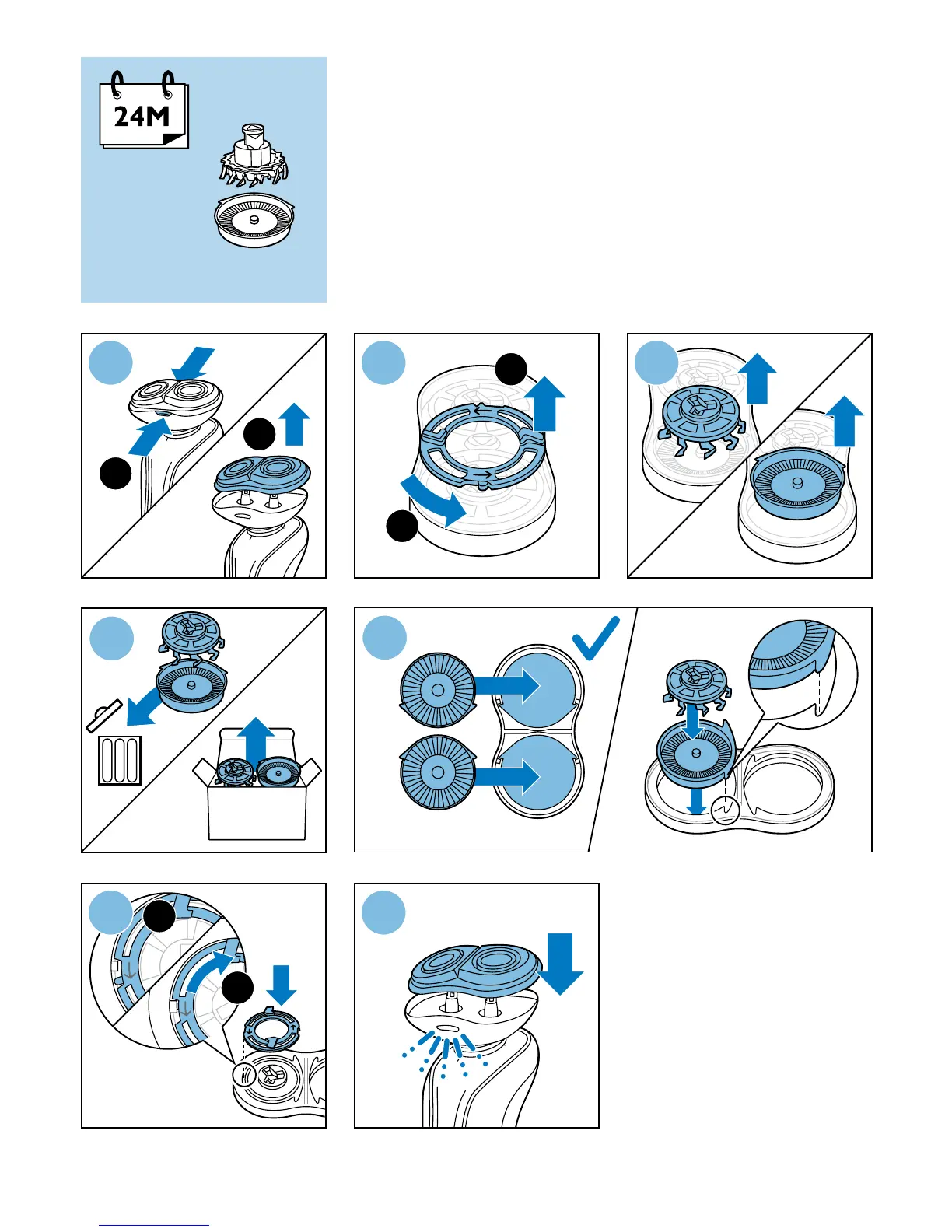 Philips S738 - Replacing SH30 Shaving Heads; Removing Old SH30 Heads; Installing New SH30 Heads; Cleaning After SH30 Replacement