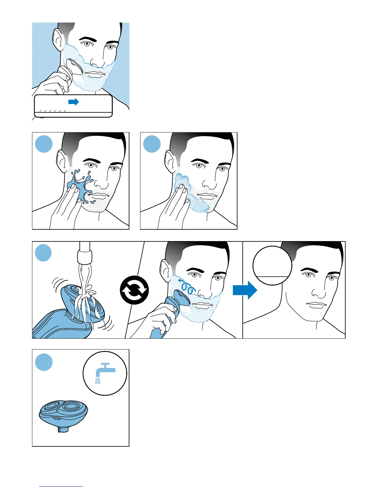Philips S738 - Wet Shaving Instructions; Preparing for Wet Shave; Wet Shaving Technique; Rinsing the Shaver Head