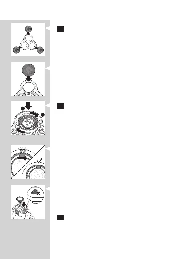 참고: 쉐이빙헤드를 재설치하고 고정 링을 다
