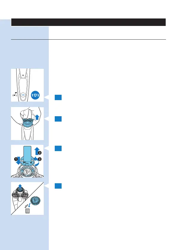 (1), turn it anticlockwise (2) and lift it off the shaving