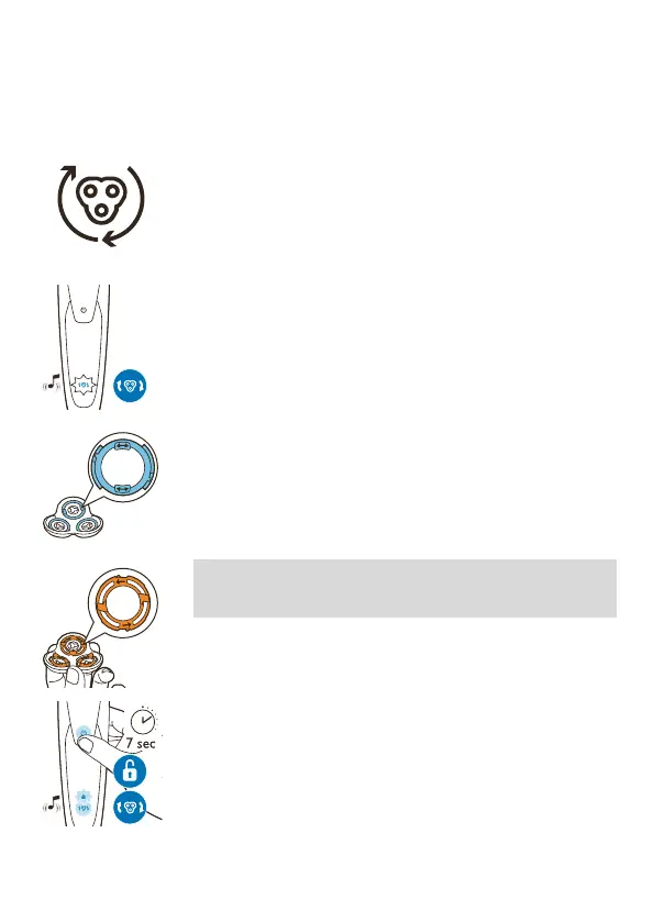 Note: The shaving heads are locked by a blue or